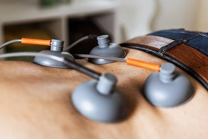 Über aufgeklebte oder angesaugte Elektroden wird dem zu behandelnden Bereich Strom zugeführt. Die Behandlung ist schmerzfrei und führt zur Lockerung der Muskulatur sowie einer gesteigerten Durchblutung. Damit können Schmerzen reduziert und Heilungsprozesse gefördert werden.